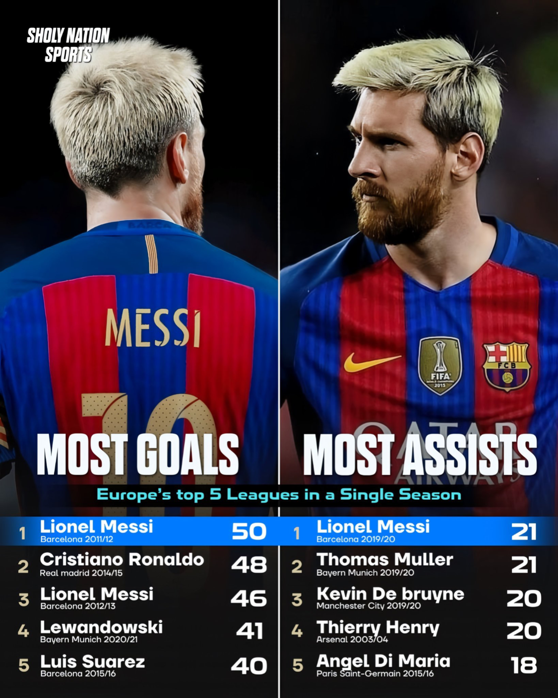 8月30日。有媒体SNS统计并公布了五大联赛单赛季进球和助攻的历史前五。其中进球历史榜首和助攻历史榜首都是同一个球员,这个球员是谁?所有人都知道。那就是梅西。