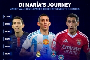 体育资讯7月3日讯 本菲卡止步世俱杯16强,37岁迪马利亚今夏回归罗萨里奥中央,告别欧洲足坛。 德国转会市场列出了迪马利亚的身价变化图,他的身价在效力曼联时期达到最高点6500万欧元,目前身价200万欧元。